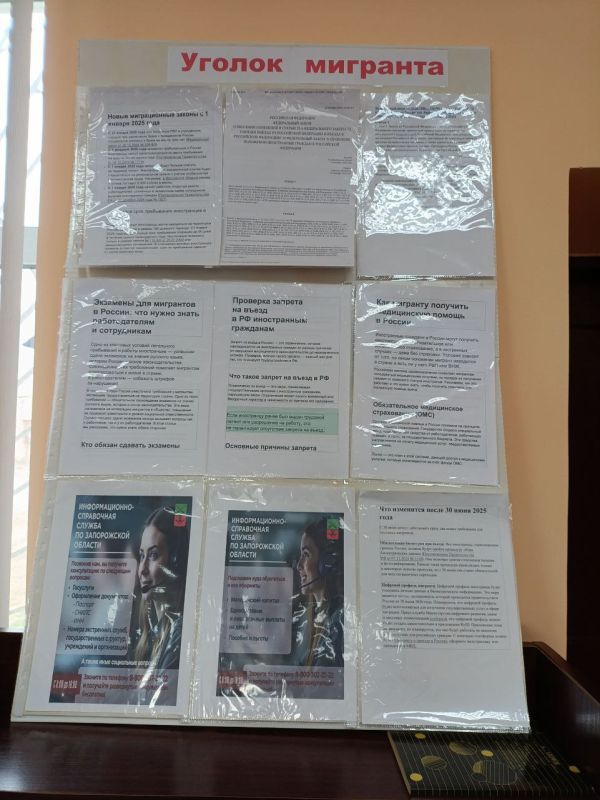 «Уголок» включает в себя информацию основ российского законодательства, правовую информацию в области миграции, материалы по трудовому законодательству, телефоны организаций, оказывающих бесплатную помощь.