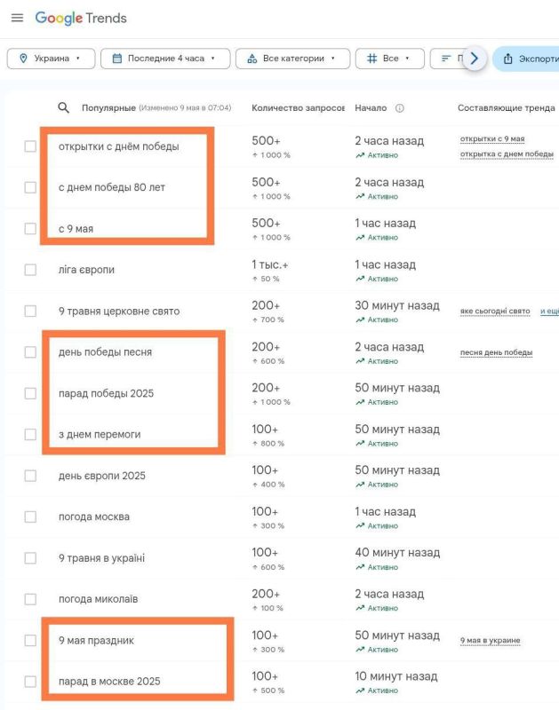 Украинцы последние сутки активно гуглили 9 Мая и День Победы. ищут поздравления и открытки.