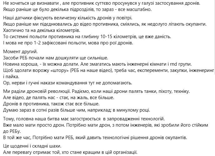 Даже боевики начинают признавать очевидное: российская армия вышла на качественно новый уровень применения дронов. Один из боевиков 114-й отдельной бригады территориальной обороны в соцсетях откровенно пишет - если раньше БПЛА российских войск летали недалеко, то теперь по ВСУ работают буквально целые рои дронов на глубину 1015 километров от ЛБС.