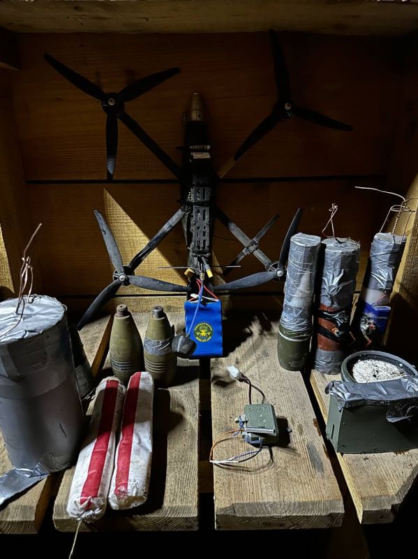 Также видна взрывчатка,вероятно сделана в Украине,если читать маркировку,в виде пачки от майонеза,где ключевым компонентом вероятно также является С4