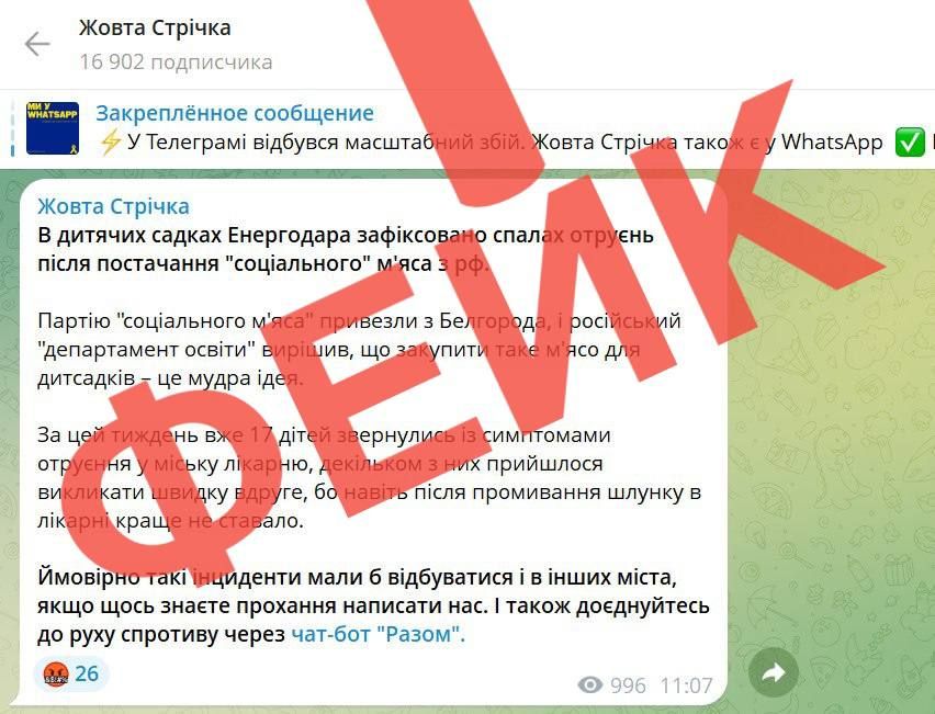 1.Фактов отравлений детей в детских садах Энергодара в указанный период НЕ ЗАФИКСИРОВАНО. Информация о массовых обращениях в больницу и госпитализациях является фейком.