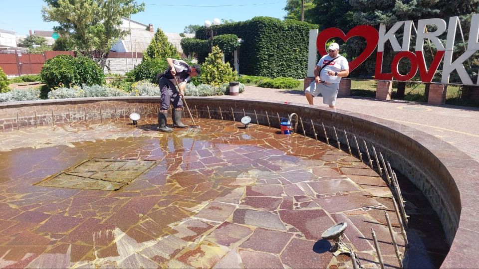 В центре Кирилловки провели техобслуживание фонтана