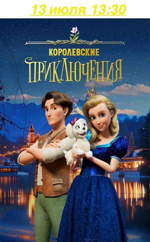 13 июля: 13:30 - мультфильм "Королевское приключение". 16:00 - фильм