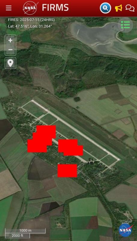 Карта пожаров показывает очаги возгораний на аэродроме под Вознесенском в Николаевской области и в аэропорту Запорожья после ночных ударов "Гераней"