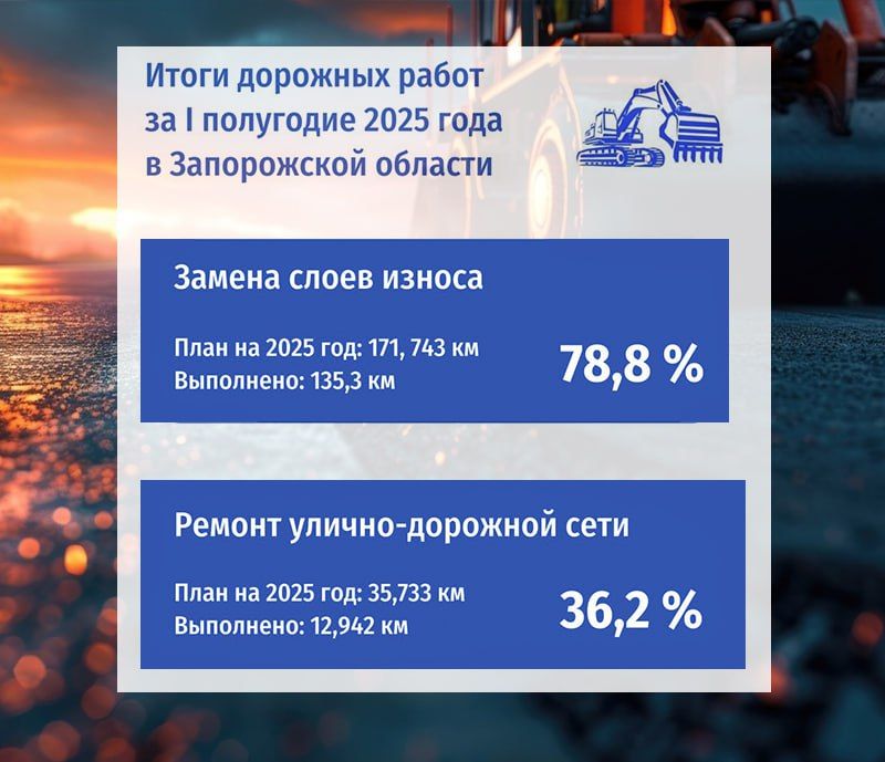 Итоги дорожных работ в Запорожской области за первое полугодие 2025 года.