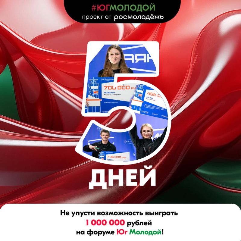До конца приема заявок на грантовый конкурс Росмолодёжь.Гранты в рамках Всероссийского молодежного образовательного форума «Юг молодой» осталось всего 5 дней!