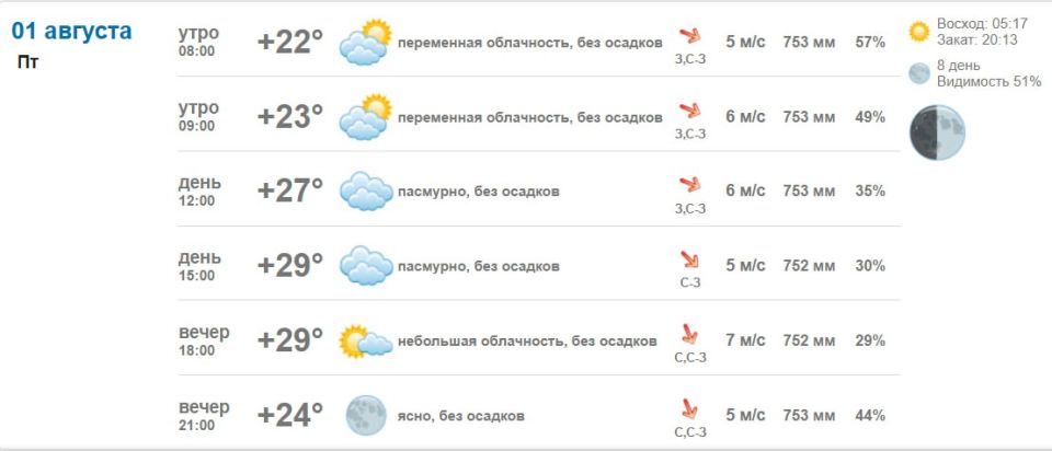 Подробно о погоде в Васильевке 1 августа 2025 года