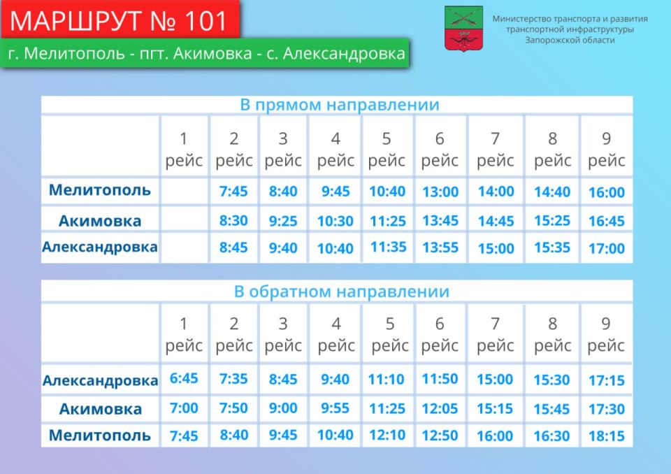 № 101 «г. Мелитополь - пгт. Акимовка - с. Александровка»