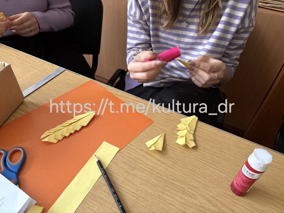 Дети из кружка ДПИ «Фантазия» с удовольствием создавали колоски в технике оригами.