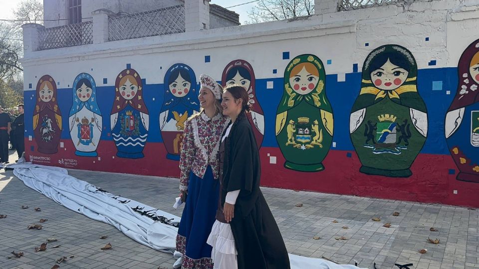 В Херсонской области развернули огромный флаг региона. Его площадь – 800 квадратных метров. А еще тут открыли 17-ти метровый мурал из 12 матрешек, каждая символизирует регионы ЮФО.