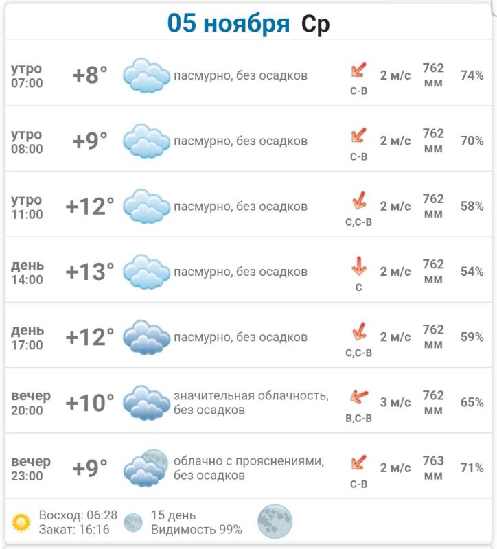 Подробно о погоде в Васильевке 5 ноября 2025 года