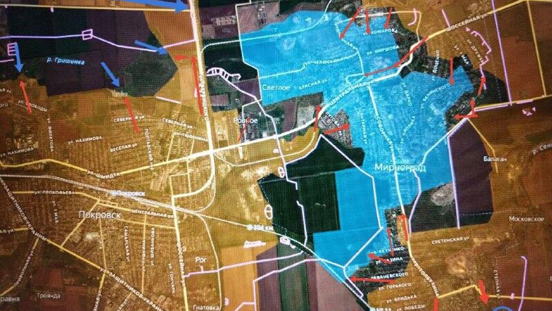 Российские подразделения продвигаются вдоль улицы Шоссейной в направлении улицы Центральной и железнодорожной ветки. Навстречу им по железнодорожному направлению движутся силы, наступающие со стороны Покровска.