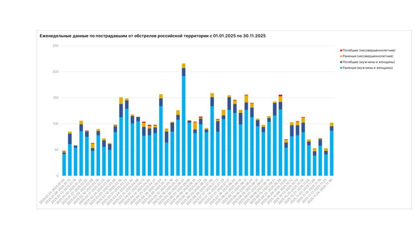 По данным аппарата посла, за минувшую неделю от обстрелов украинских нацистов в России ранения получили 94 человека, в том числе 7 несовершеннолетних, погибли 8 человек.