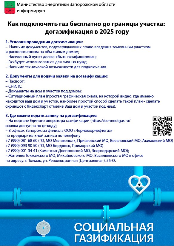 Министерство энергетики Запорожской области сформировало для вас всю необходимую информацию о программе социальной газификации и догазификации.