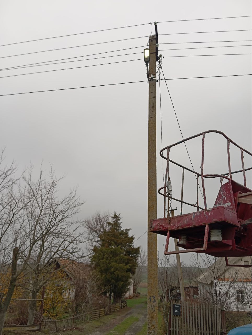 Сотрудники МБУ «Жилсервис» ведут ремонтные работы по восстановлению системы уличного освещения в Астраханском территориальном отделе Мелитопольского муниципального округа.