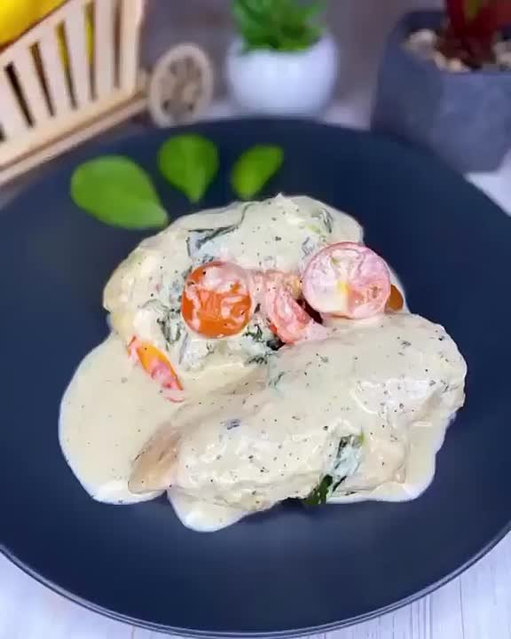 Добавь чеснок, базилик, сливки и готовь 10 минут на среднем огне.