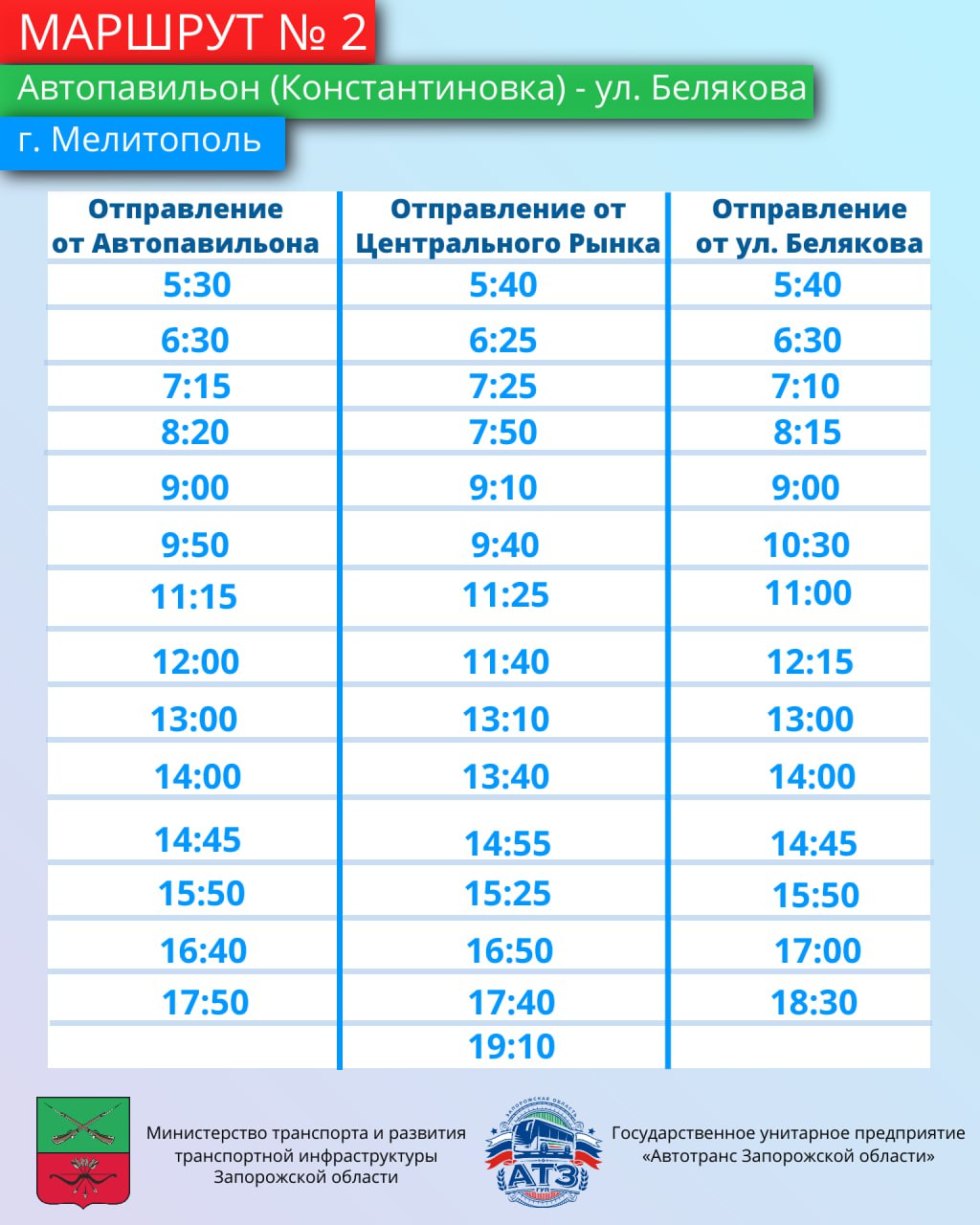 Сегодня расскажем о маршруте №2 в г. Мелитополе: «Автопавильон — ул. Белякова»