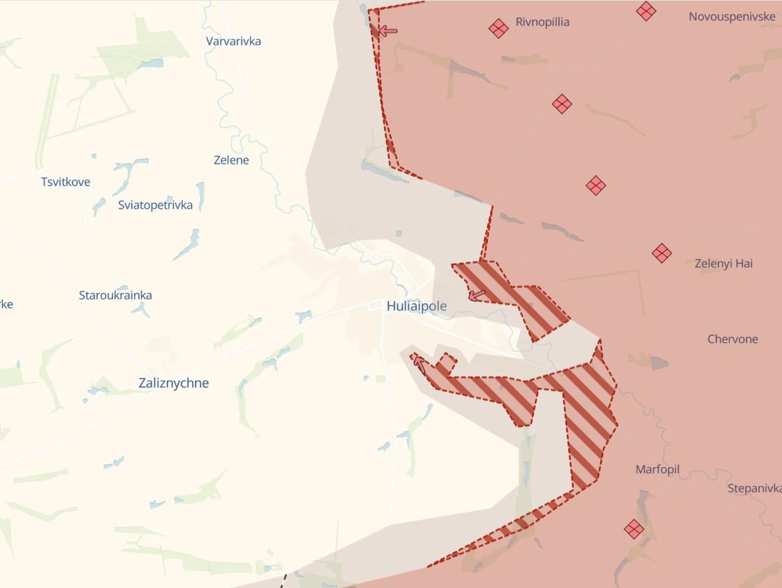 Сейчас зона контроля наших сил в городе простирается вплоть до городского кладбища на улице Мира.Таким образом - наши войска уже подходят к центру Гуляйполя, пишет Тимофей...