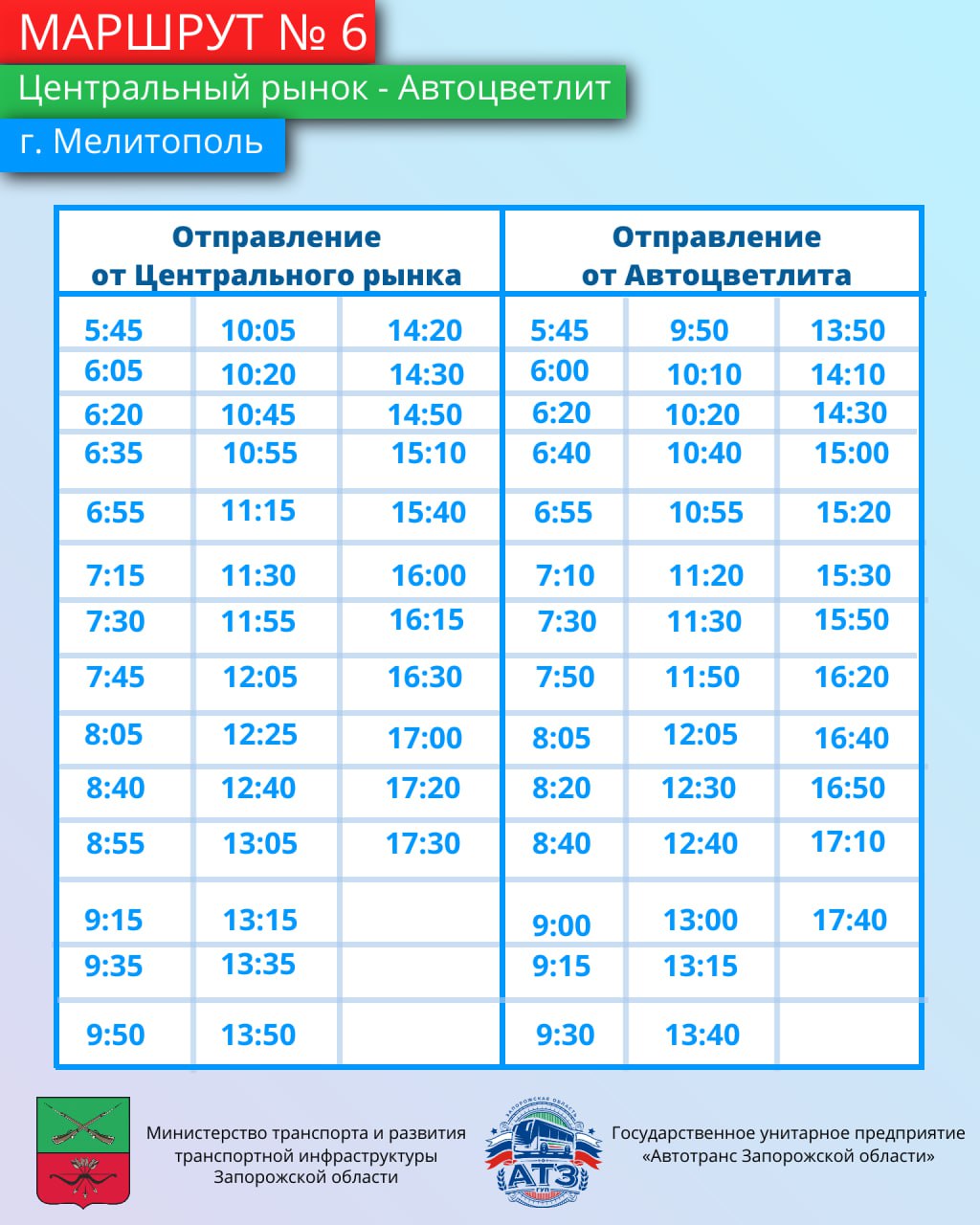 Сегодня расскажем о маршруте №6 в г. Мелитополе: «Центральный рынок — Автоцветлит»