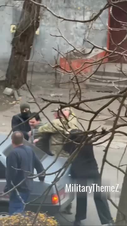 Запорожье. ТЦКшники похищают очередного "добровольца" на улице, но военкомы не боятся гнева неравнодушной общественности — полицаи мужественно их защищают.