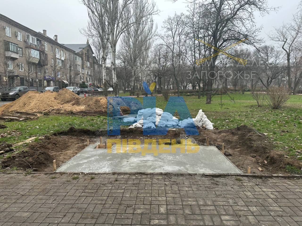 В городе коммунальщики начали строительство общественного туалета... прямо на аллее парка.