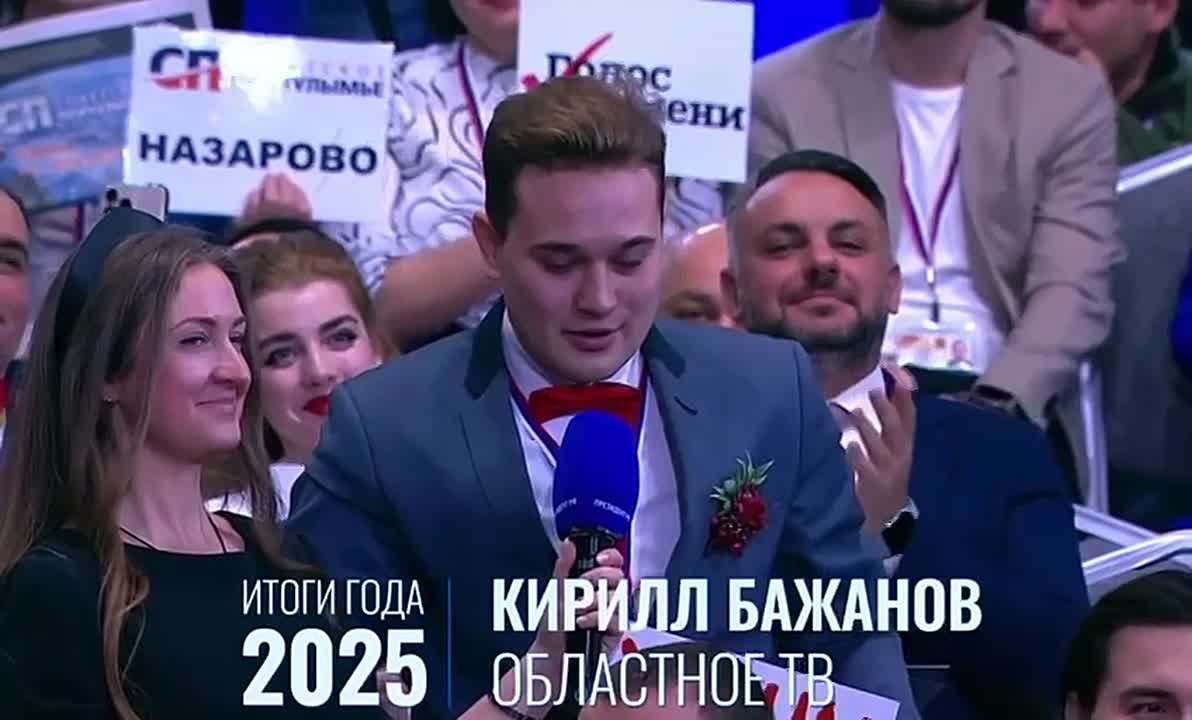 Молодой человек с плакатом «Хочу жениться» сделал своей девушке предложение на прямой линии с Президентом Владимиром Владимировичем Путиным.