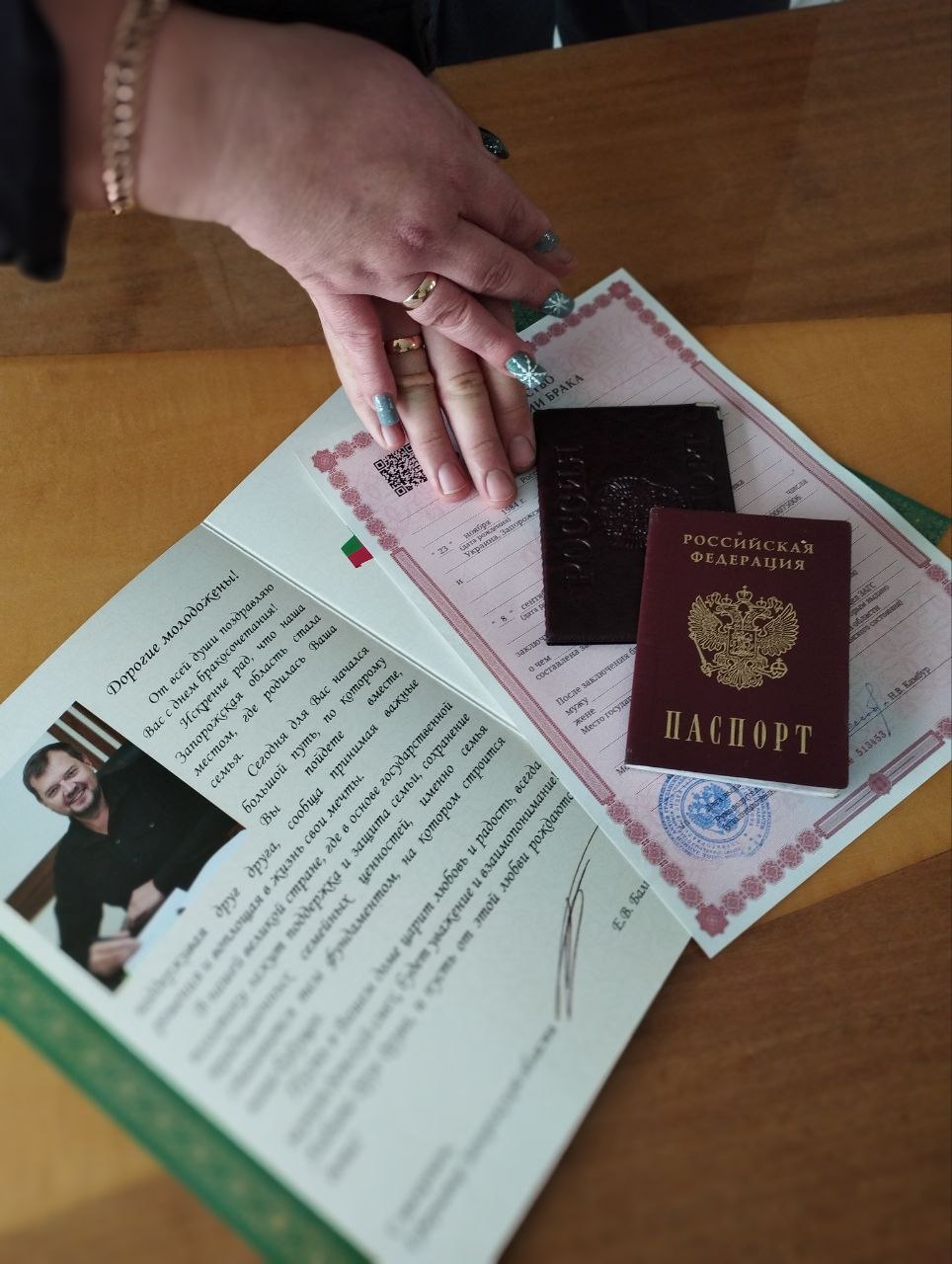 Молодожены получили свидетельство о браке и теплые поздравления от сотрудников ЗАГСа, а также поздравительный адрес от Губернатора Запорожской области Евгения Балицкого.