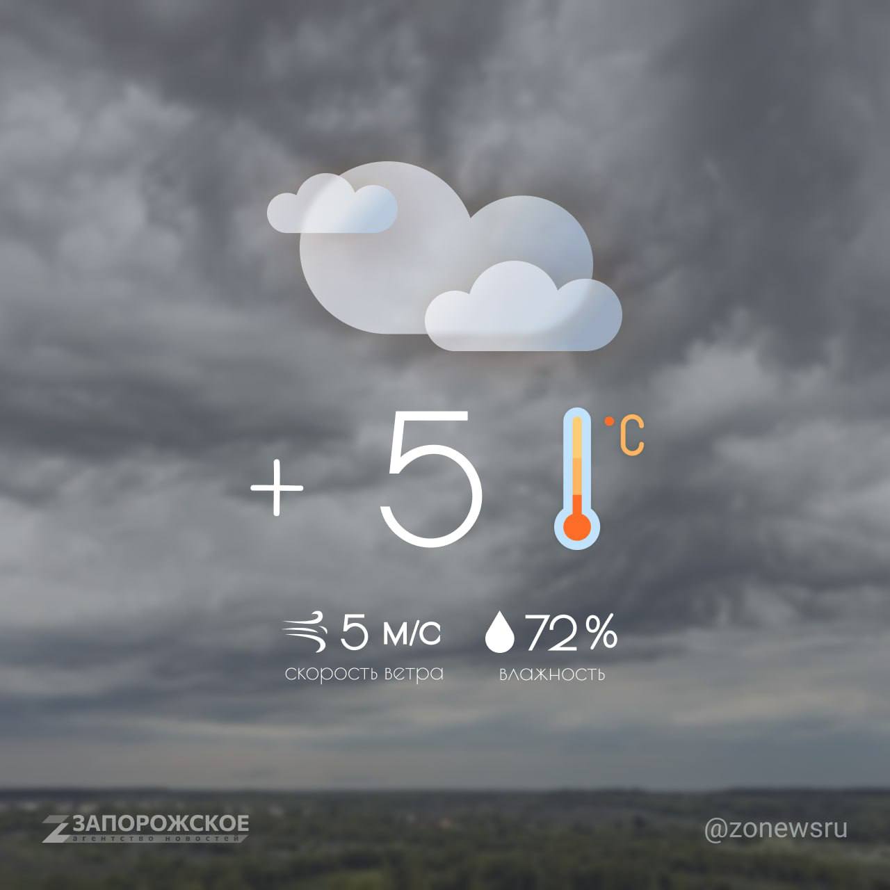 Мелитополь — +5 °С, пасмурно