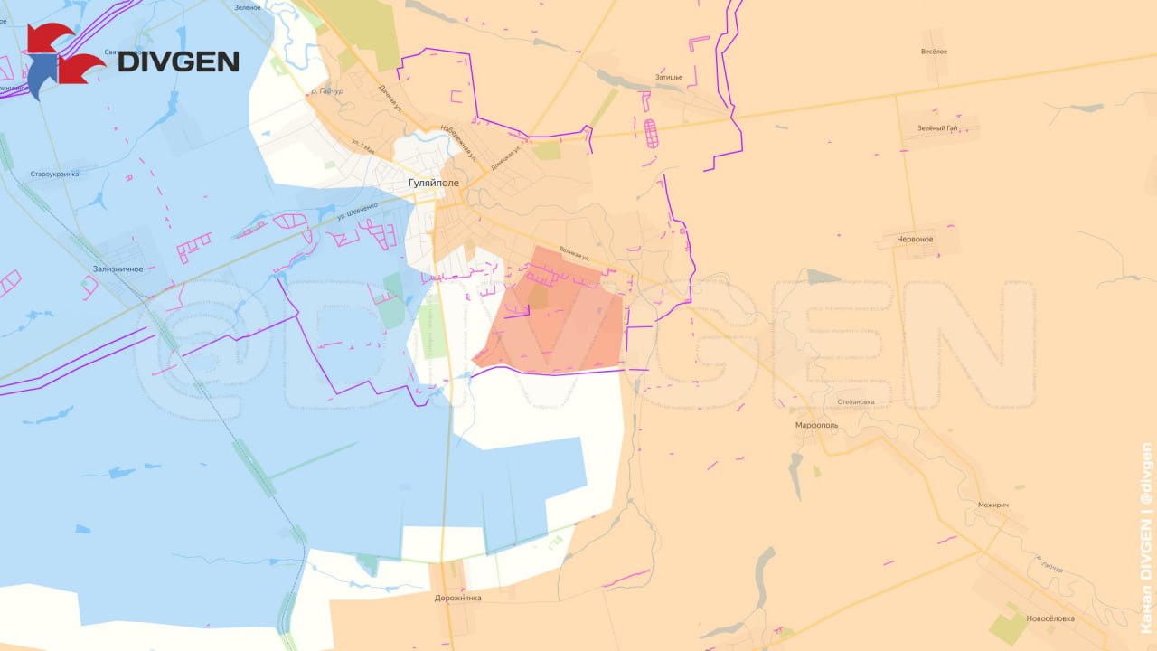 Продвижение ВС РФ южнее Гуляйполя нанёс на карту канал "DivGen"