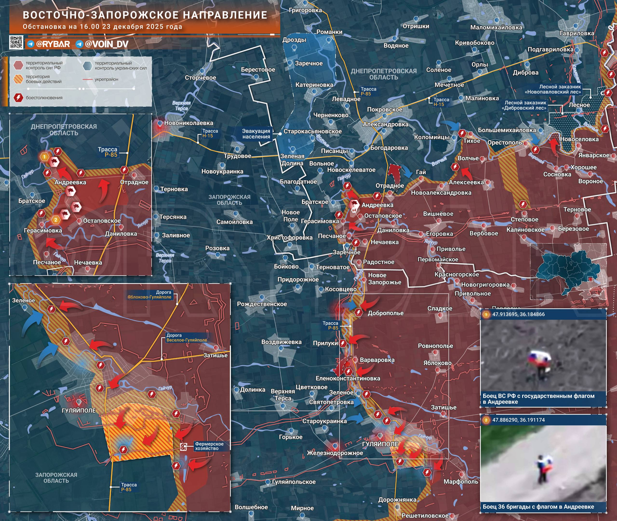 Боестолкновения смещаются на запад к Братскому, на подступах к которому ВСУ организовали оборону на крупном опорнике у русла Гайчура. Российские войска изолируют противника от снабжения ударами дронов и атакуют со стороны Андреевки и Герасимовки.