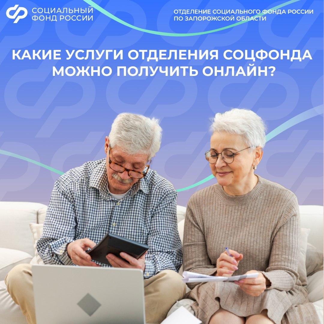 Отделение Социального фонда России по Запорожской области предоставляет возможность получить некоторые услуги дистанционно. Все, что вам нужно – это ваш личный кабинет на портале госуслуг (https://www.gosuslugi.ru/).