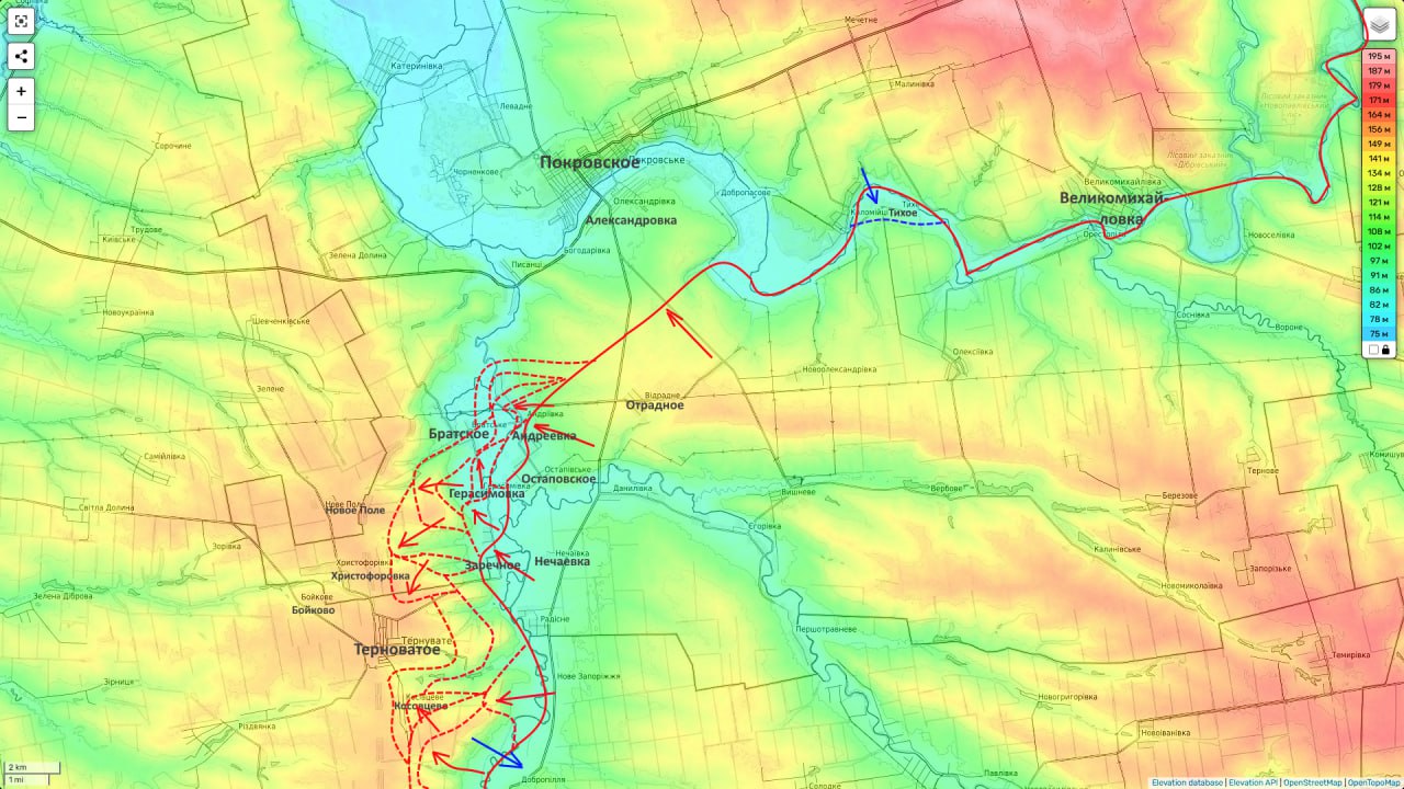 Что вместе с нашим заходом в северные окраины то же Терноватого говорит о том, что скоро это село также перейдет под наш контроль. И у нас будет устойчивый и большой плацдарм на правом берегу реки Ганчур, с которого далее «Восточный экспресс» (группировка «Восток») продолжит наступление в тыл Ореховской группировки противника.