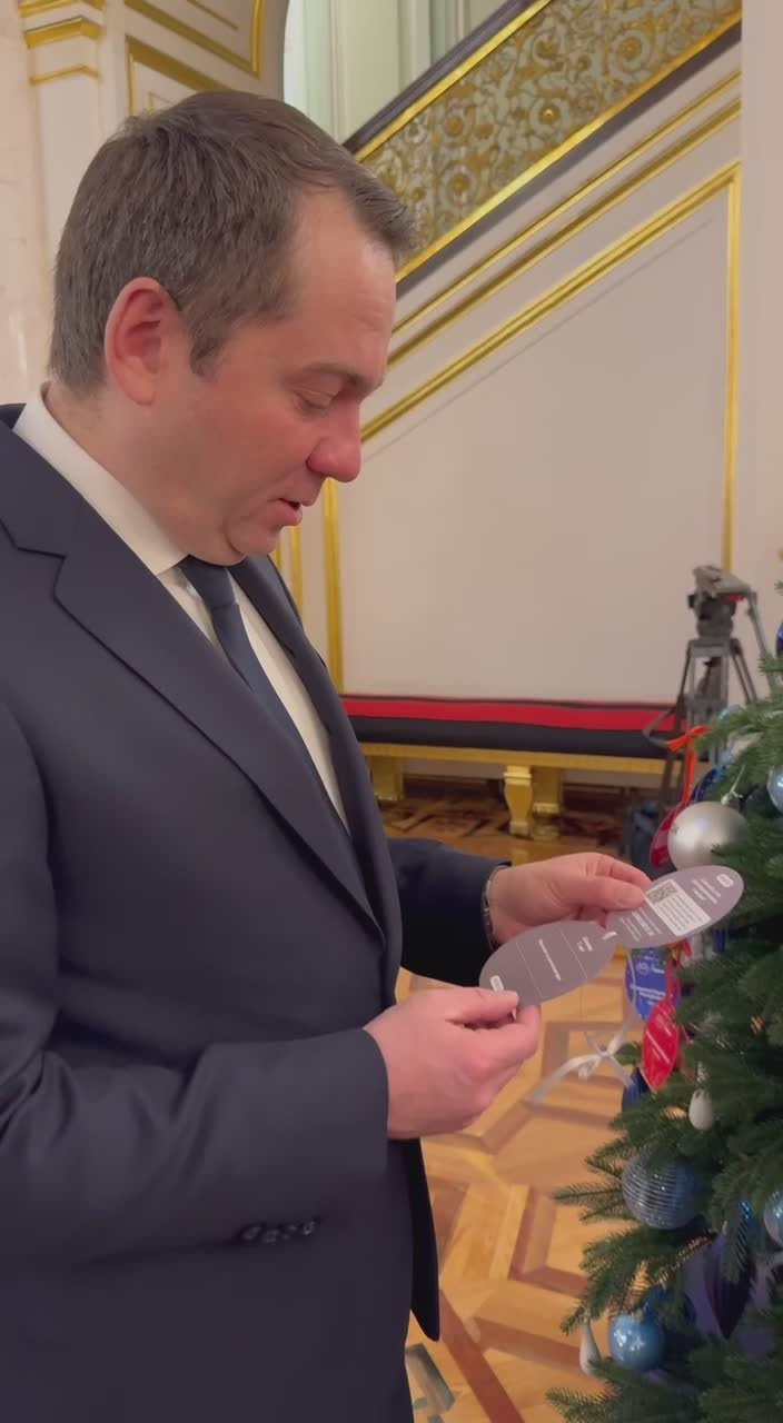 Андрей Владимирович снял с новогодней ёлки три открытки с детскими мечтами и пообещал обязательно их исполнить.
