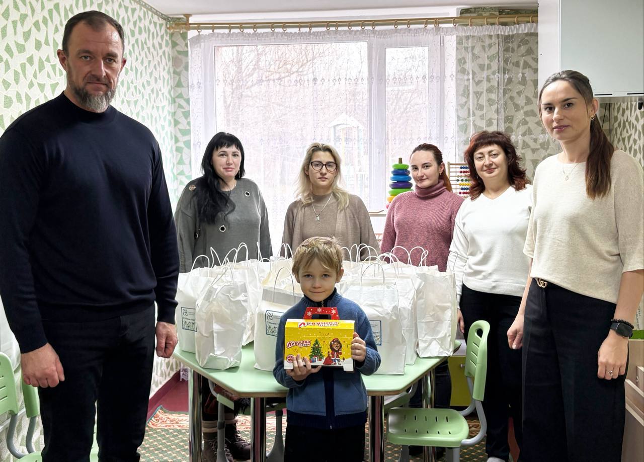В преддверии Нового года заместитель главы Бердянского городского округа по социальным вопросам Александр Бурдин совместно с начальником управления по социальным вопросам администрации округа Наталией Затишной вручили сладкие новогодние подарки детям, проходящим сопровождение в территориальной психолого-медико-педагогической комиссии (ТПМПК) города Бердянска.