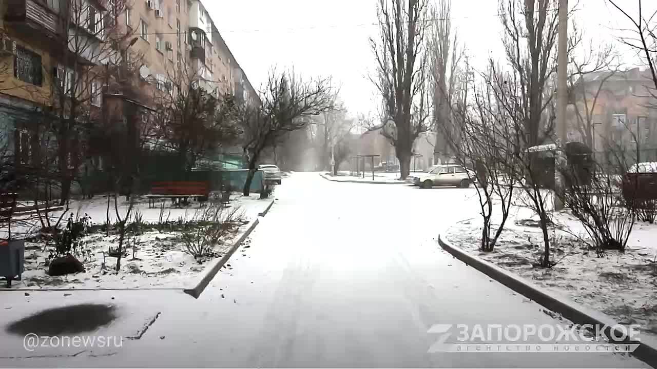 В Мелитополе разыгралась настоящая зимняя сказка: снегопад с порывистым ветром активно засыпает дворы и дороги города.