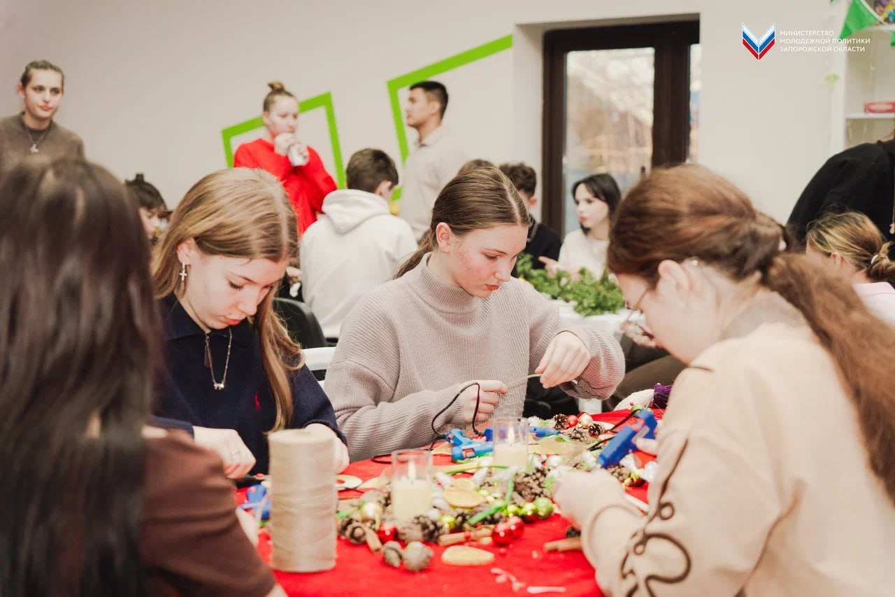 «Венок желаний» молодёжь создавала новогодние венки.
