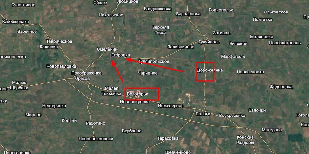 К югу от Гуляйполя российские войска продвинулись в районе северо-западнее Дорожнянки, заняв новые позиции в лесополосах и массиве леса. Продвижение через «зелёнку» носит не эпизодический, а последовательный характер — противник выдавливается с подготовленных наблюдательных и огневых точек, теряя возможность контролировать подступы к направлению Омельник–Гуляйполе.