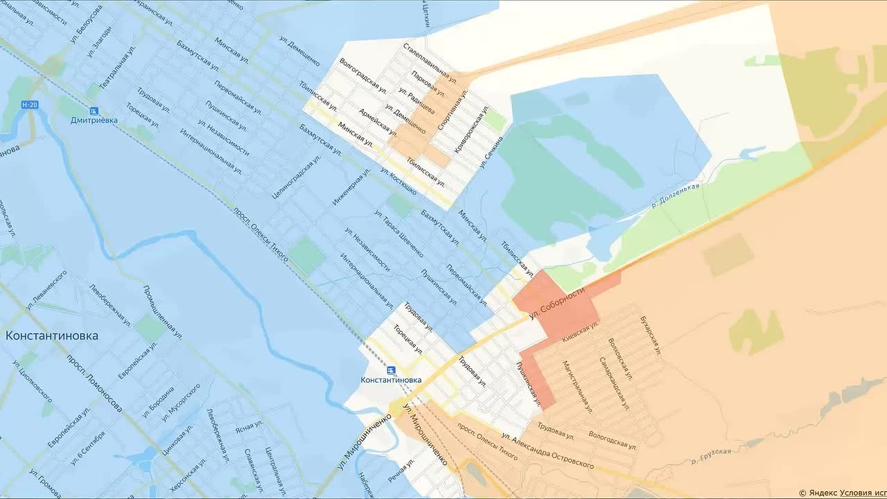 При этом, как хорошо видно на карте, никакой «более половины Константиновки» мы не контролируем.