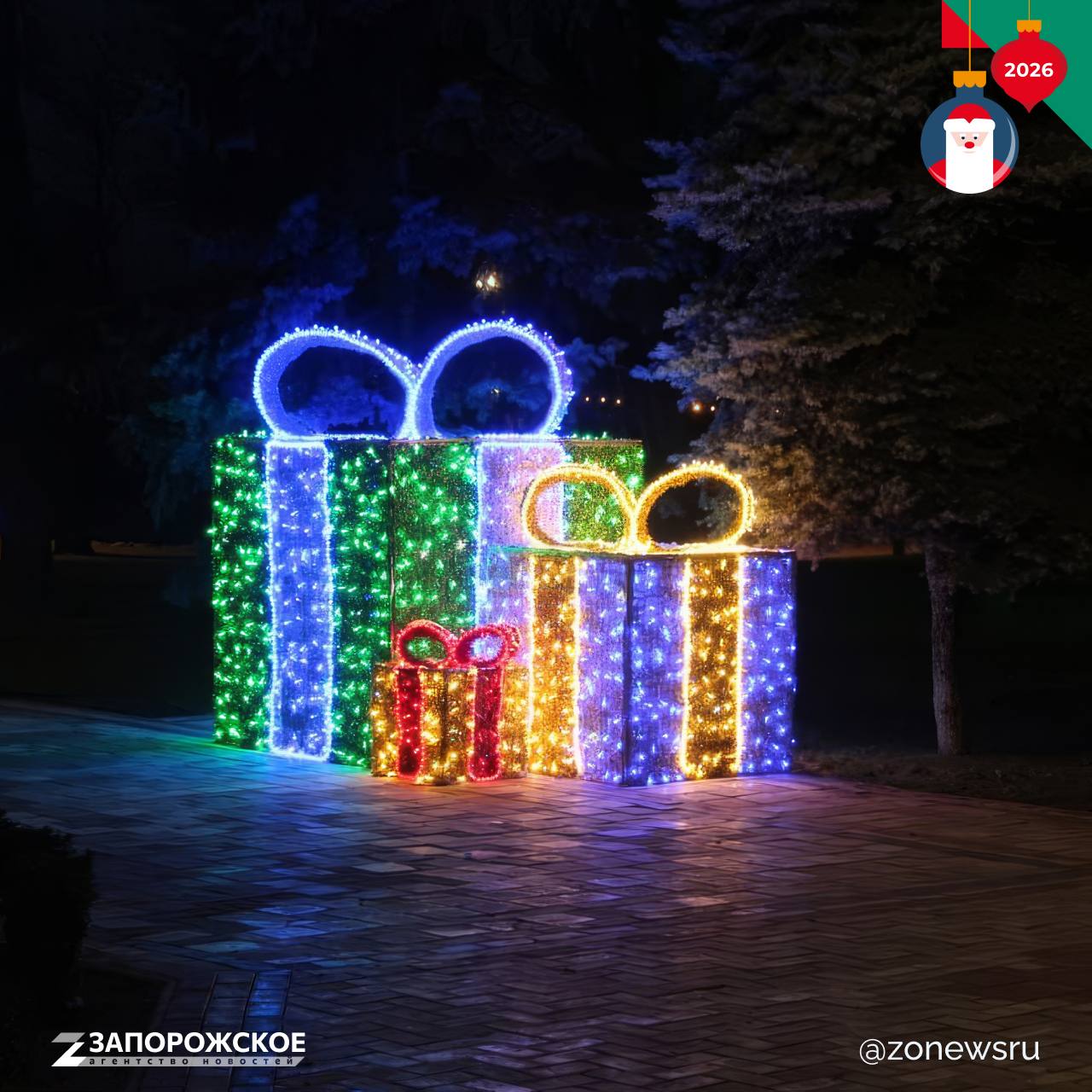 Точка отправления — главный символ праздника: самая нарядная елка Запорожской области. Ее огни создают настоящий вау-эффект, словно волшебный кристалл, зажженный в центре города. Рядом, на месте фонтана, развернулась яркая зимняя инсталляция. А у стелы гостей встречает сияющая арка с надписью «С Новым годом!» — будто портал в праздничную историю.