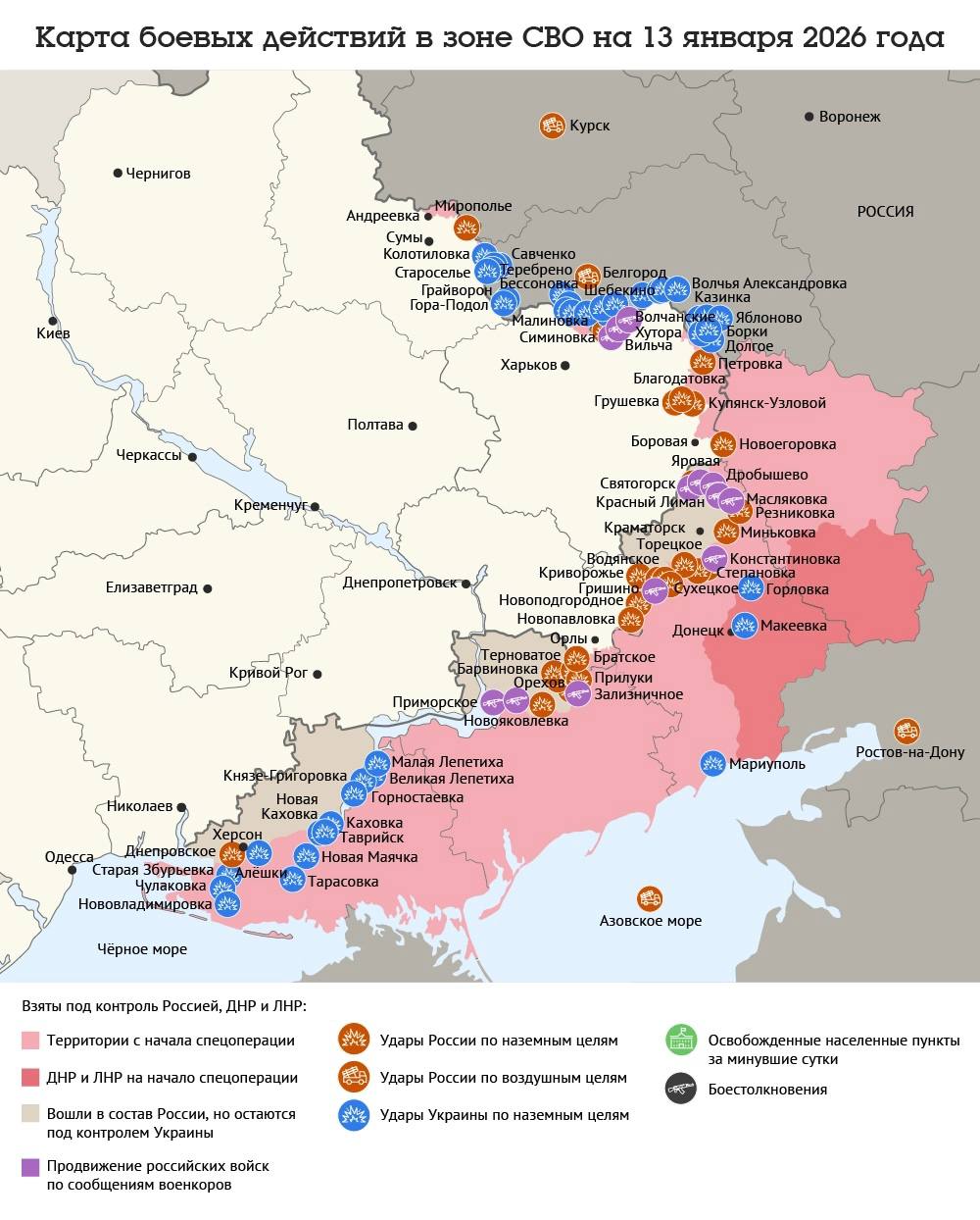 Карта боевых действий в зоне СВО на 13 января 2026 года