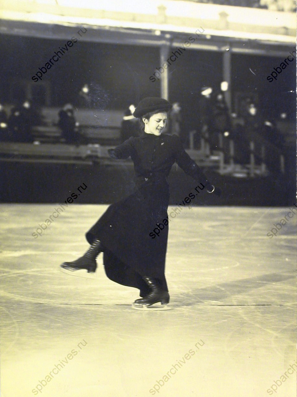 На фото: первая фигуристка России Ксения Генриховна Цезар во время выступления на льду Юсупова сада, 1911 г., Санкт-Петербург