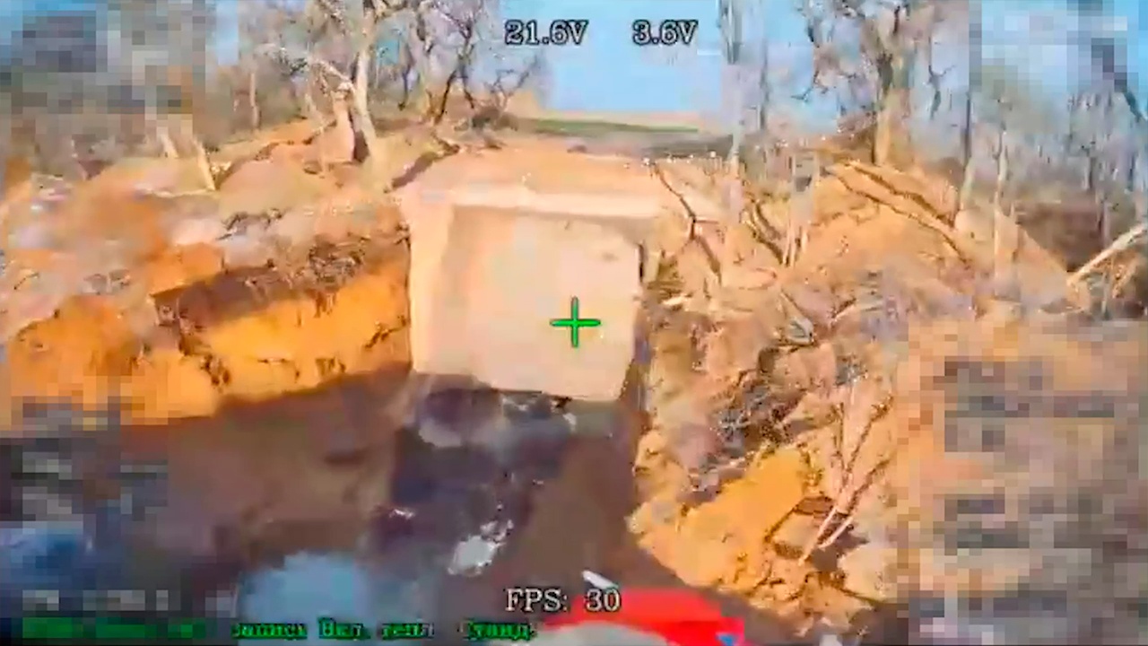 Судя по кадрам воздушной разведки, САУ была размещена в лесополосе и прикрыта защитным каркасом, а также укрыта с использованием рельефа и растительности. После уточнения координат по цели последовательно отработали несколько FPV-дронов на оптоволоконном управлении. Их удары разрушили защитные элементы и лишили установку прикрытия.