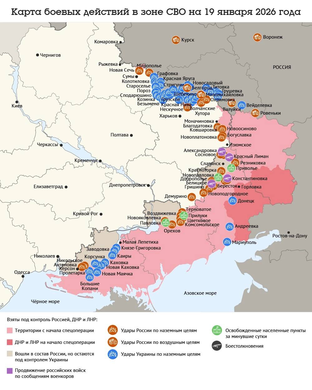 Карта боевых действий в зоне СВО на 19 января 2026 года