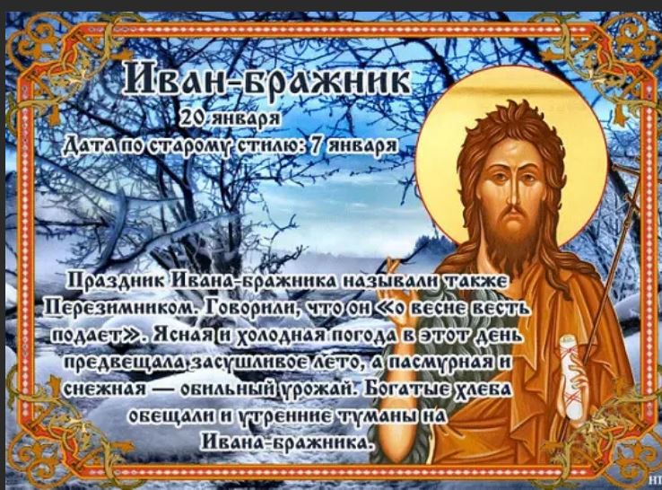 Это день Собора святого Пророка, Предтечи и Крестителя Господня Иоанна. Название Зимний свадебник праздник получил в связи с тем, что начиналось время сватовства, и отправляли сватов к родителям невесты. Еще его именуют Бражником, так как именно в этот день священной водой «запивается зло».