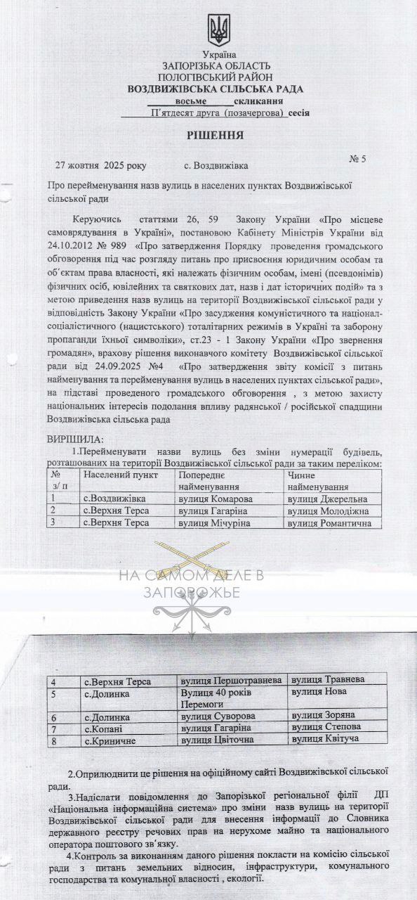 Придурки из организации "Деколонизация. Украина" отчитались о том, что Воздвиженская громада Пологовского района Запорожской области переименовала все улицы, которые еще не были переименованы.