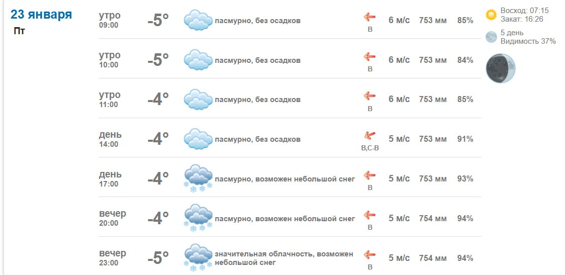 Подробно о погоде в Васильевке 23 января 2026 года.