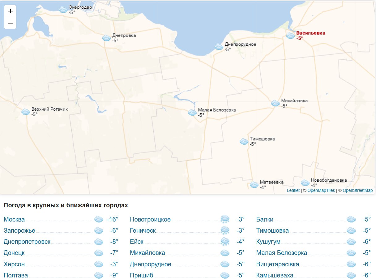 Погода 12 января 2026 года в крупных и ближайших к Васильевке городах и населённых пунктах