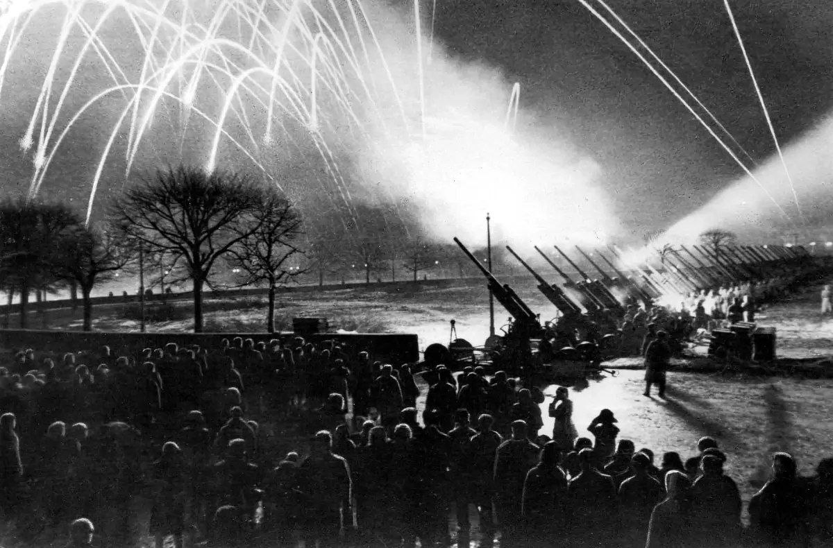 За залпом залп. Гремит салют. Ракеты в воздухе горячем Цветами пёстрыми цветут. А ленинградцы Тихо плачут.