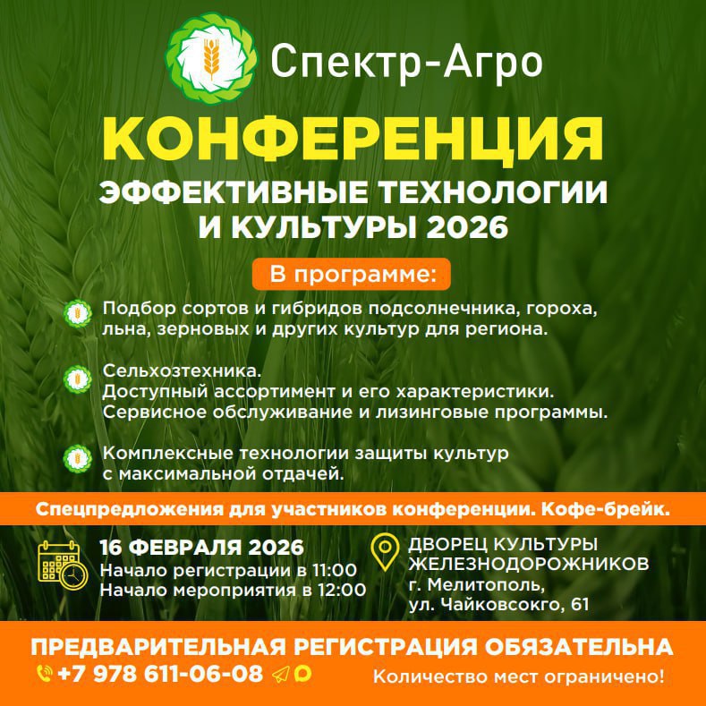 Приглашаем сельхозтоваропроизводителей Запорожской области принять участие в конференции «Эффективные технологии и культуры – 2026»
