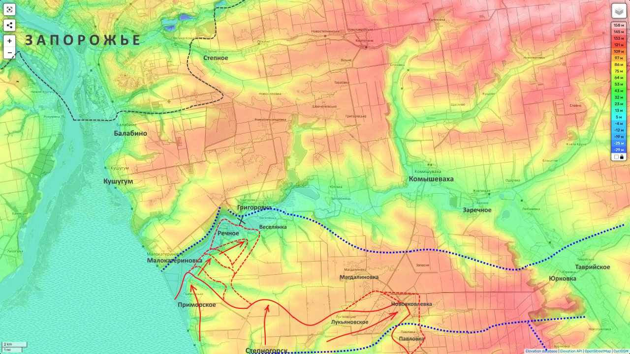 Сегодня МО РФ официально объявило объявило о занятии н.п.Речное. Село это небольшое, но это продолжение нашего наступления по долине реки Конка. За которой буквально в 12 км находятся окраины г. Запорожье.